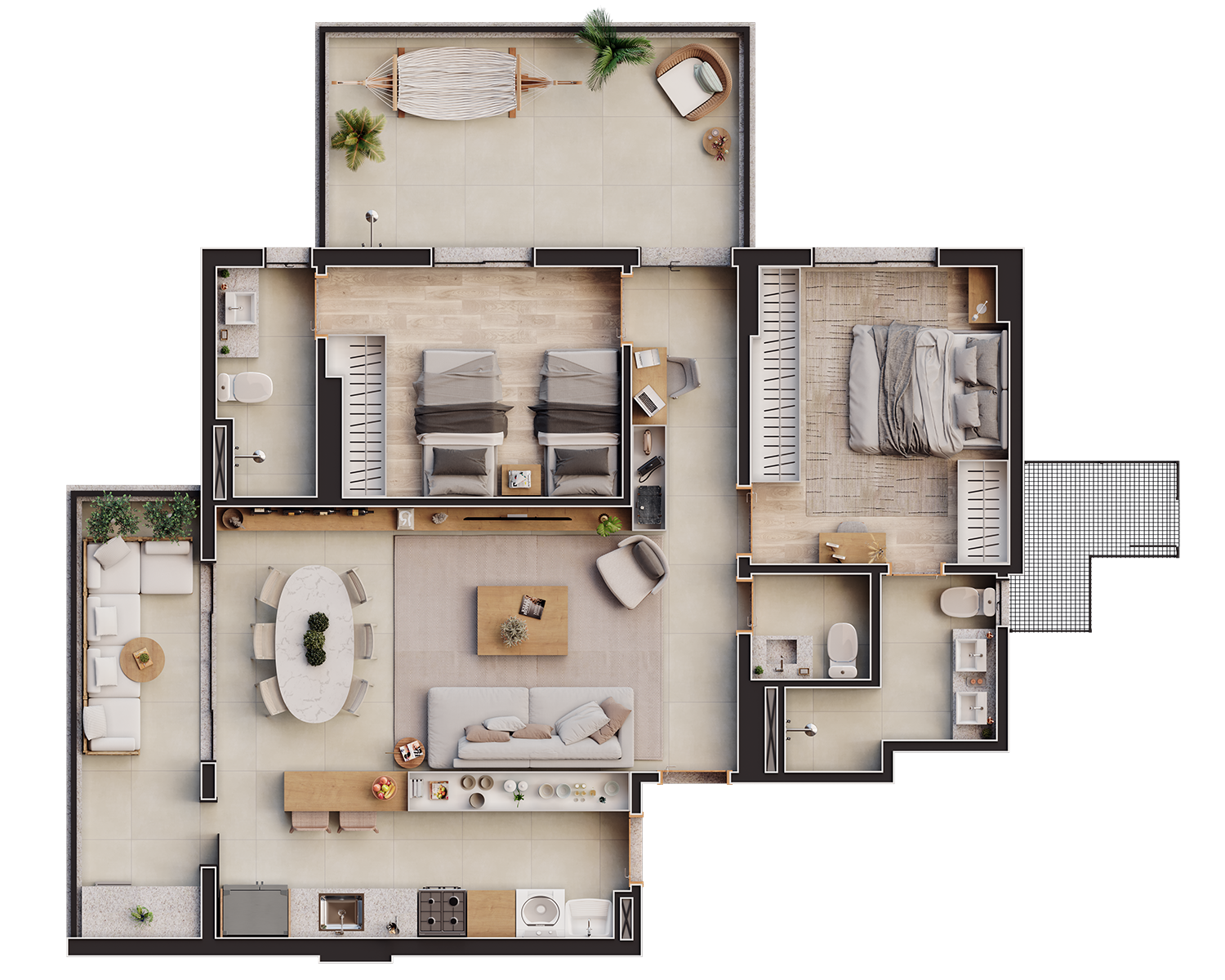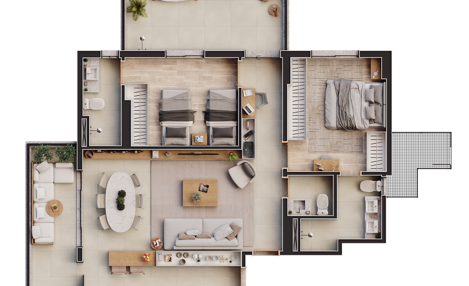 O privilégio de morar a poucos metros do Parque das Nações Indígenas, do Bioparque Pantanal e do Museu das Esculturas. Além de tudo, a poucos passos do melhor shopping da cidade. É estar conectado à cidade e em meio à natureza exuberante.